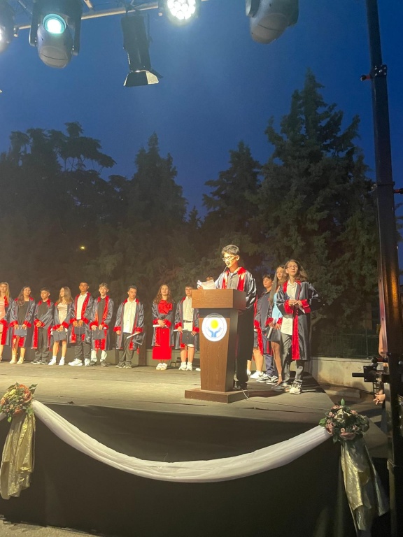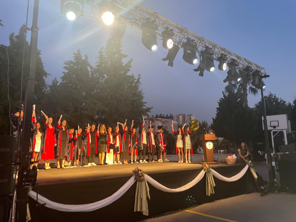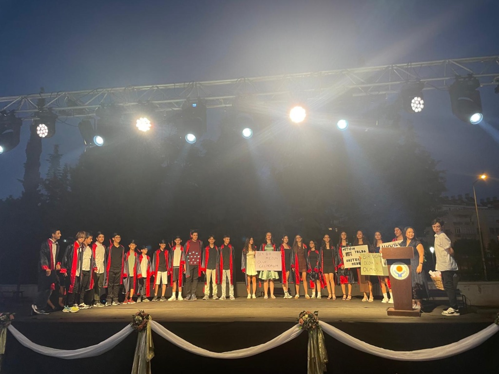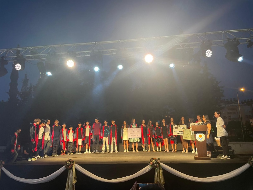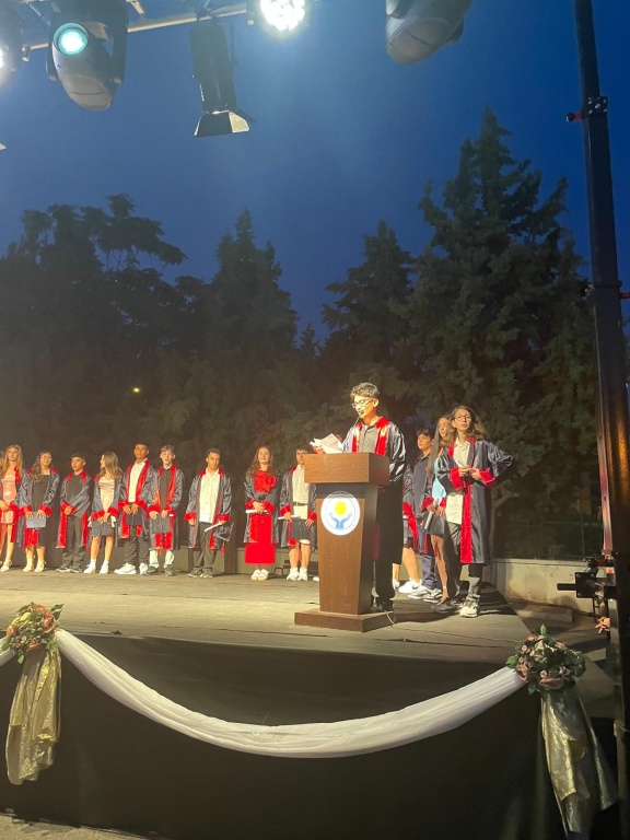 Mezuniyet programında öğrencilerimiz duygusal ve neşeli anları bir arada yaşarken, öğretmenleri ve aileleri de bu özel güne tanıklık etti. Tören; saygı duruşu, İstiklâl Marşı, konuşmalar ve öğrencilerin veda gösterileriyle dolu dolu geçti.